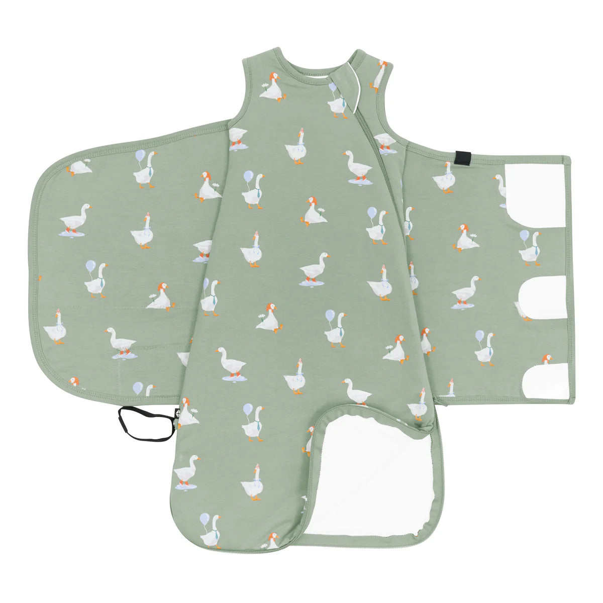 Our Sleep Bag Swaddler is an all-in-one sleep system that comforts your baby from the newborn stage to the next. Made from our signature bamboo rayon, our patent-pending sleep bag swaddler functions as both a swaddle and a 1.0 sleep bag. The attached swaddle wrap features a Velcro closure for a secure and adjustable fit, and is fully removable once swaddling is no longer recommended. There’s also a removable elastic loop that is fastened with a snap closure that can be placed around the bottom of the sleep bag. The additional step of tightening the sleep bag helps for little ones who haven’t fully grown in to their new sleep bag yet. Underneath the wrap is our award-winning sleep bag.