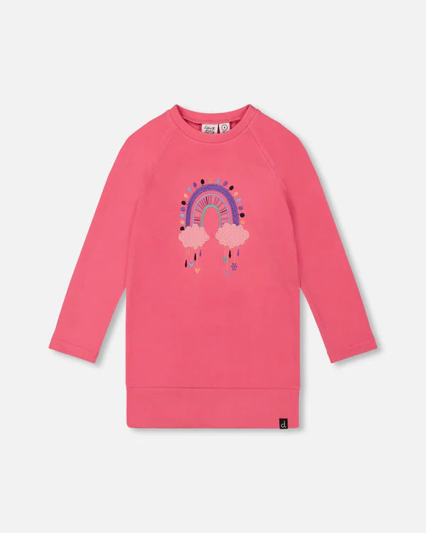This tunic top is oh-so-sweet with an embroidered rainbow and heart motif. Detailed with long raglan sleeves and a round neckline, this tunic tee is made in soft jersey fabric and features a wide band hem with slit sides and embroidered accents on the chest. Pair it with allover printed leggings for a darling head-to-toe look!