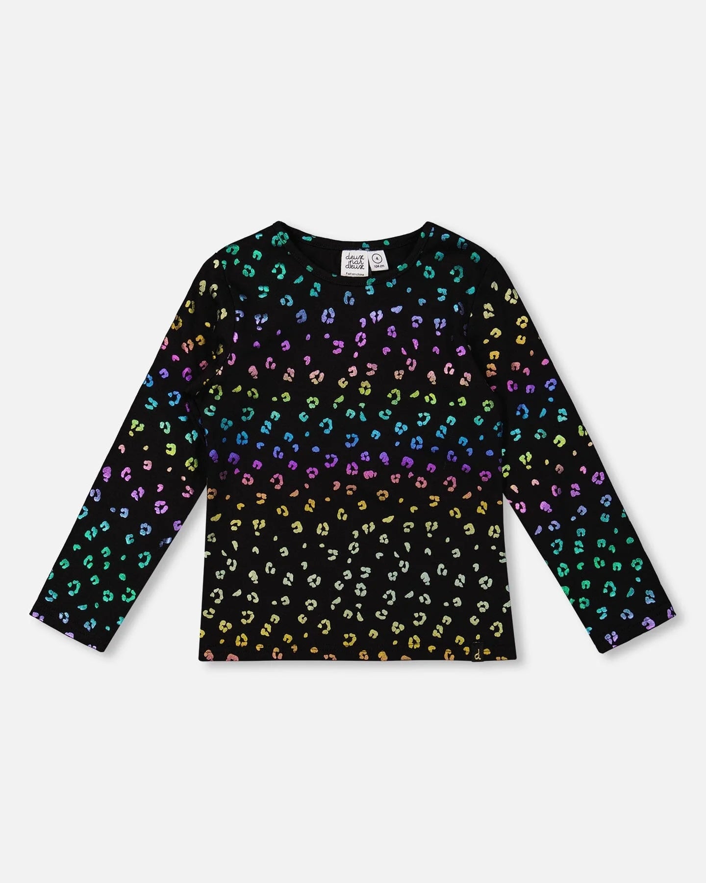 Stretch Jersey T-Shirt Multicolor Leopard Print adds a fierce and fun flair to her everyday lineup. Made from soft stretch cotton jersey, this tee features long raglan sleeves, a round color, and an allover foil leopard pattern that catches the light with every move. Pair it with leggings or joggers from our “Let’s Dance!” collection for the perfect balance of comfort and bold style.