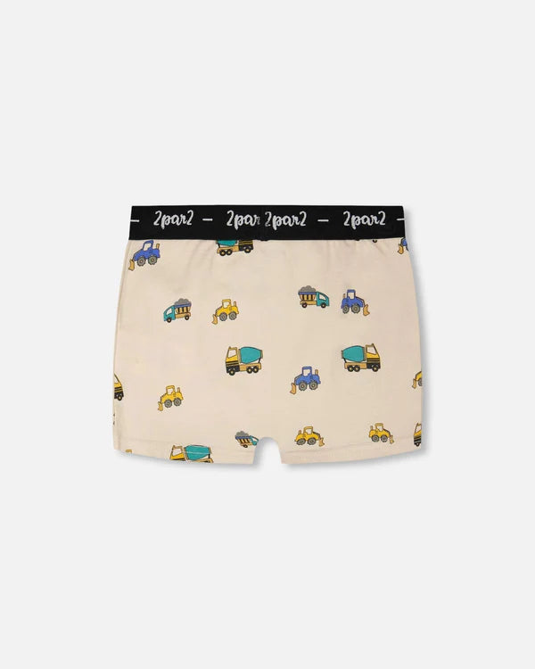 Bedtime fun starts with our organic cotton boxer in beige with truck print. Featuring playful trucks, this underwear brings a touch of adventure to everyday essentials. Made from soft organic cotton with a hint of stretch, it ensures comfort all night long