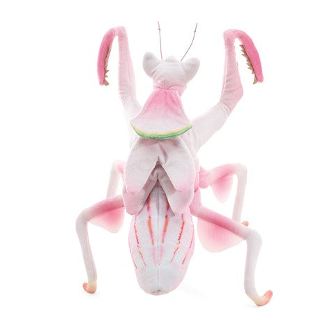 Imaginations bloom with the delicately hued Orchid Mantis puppet. This virally popular predatory insect is demure and alluring with alien-like eyes on a pink and white body, mimicking a beguiling orchid flower. Animate its long legs with five finger operation to stun and capture attention. 18" long.