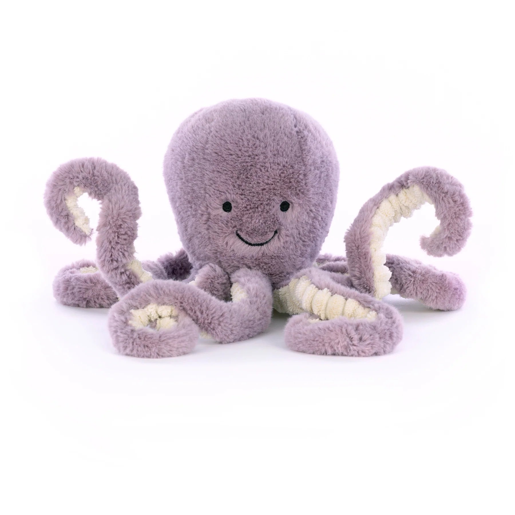 Land ahoy for eight times the cuddles! With eight soft jumbo corduroy tentacles and a wide embroidered smile Jellycat Maya Octopus is the perfect companion for giving the biggest of hugs. Her sil-like fur in a dusky mauve hue adds to Maya's irresistible ocean charms.
