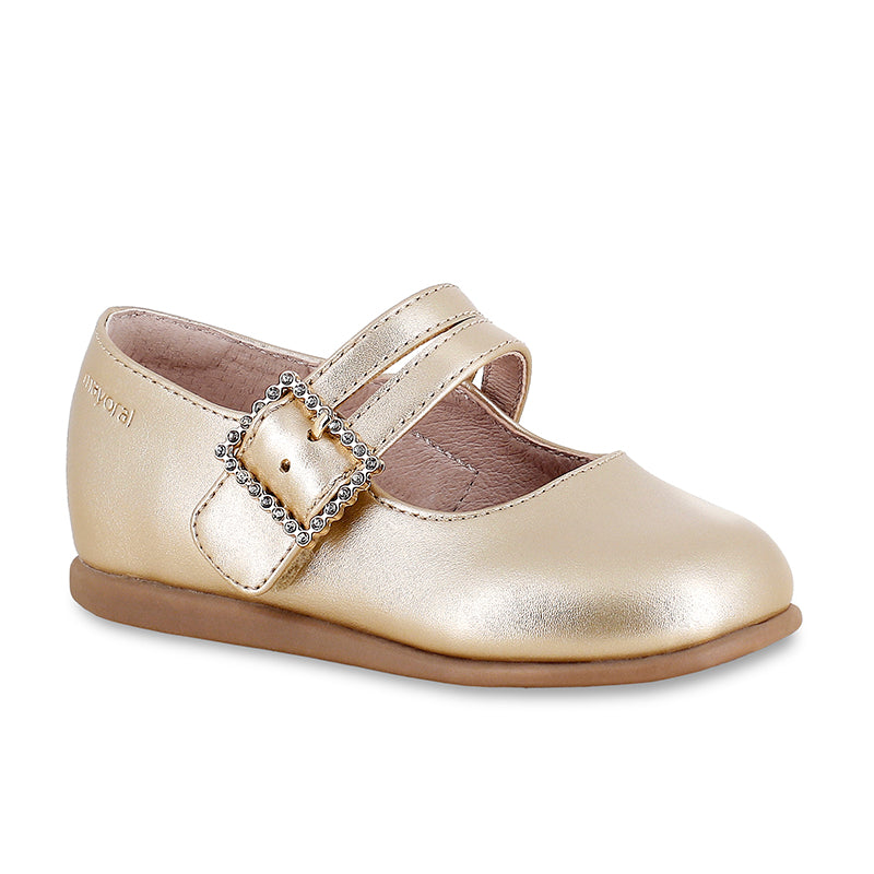 Shoe made from sustainably sourced tanned leather. Mary Jane style shoes for baby, a classic and timeless style to go with elegant outfits. Leather effect outer material. Footwear with leather lining and insole. All our shoes are made with chrome-free leather. Lightweight and flexible rubber sole. Adjustable buckle to ensure proper shoe fastening.
