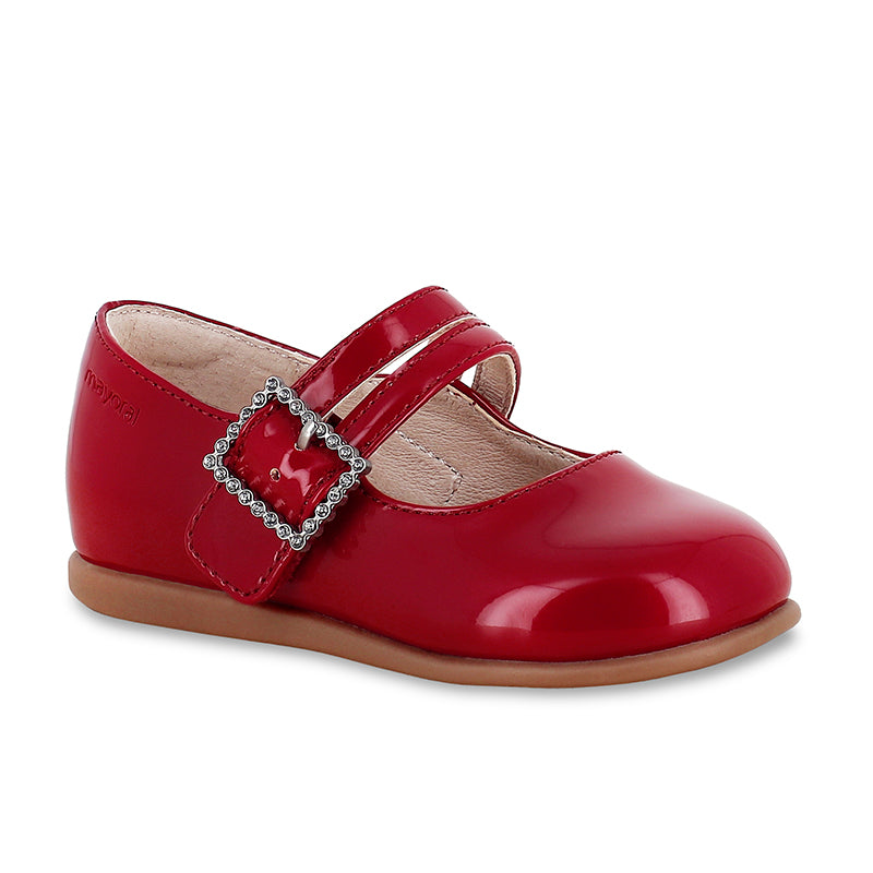 Shoe made from sustainably sourced tanned leather. Mary Jane style shoes for baby, a classic and timeless style to go with elegant outfits. Leather effect outer material. Footwear with leather lining and insole. All our shoes are made with chrome-free leather. Lightweight and flexible rubber sole. Adjustable buckle to ensure proper shoe fastening.